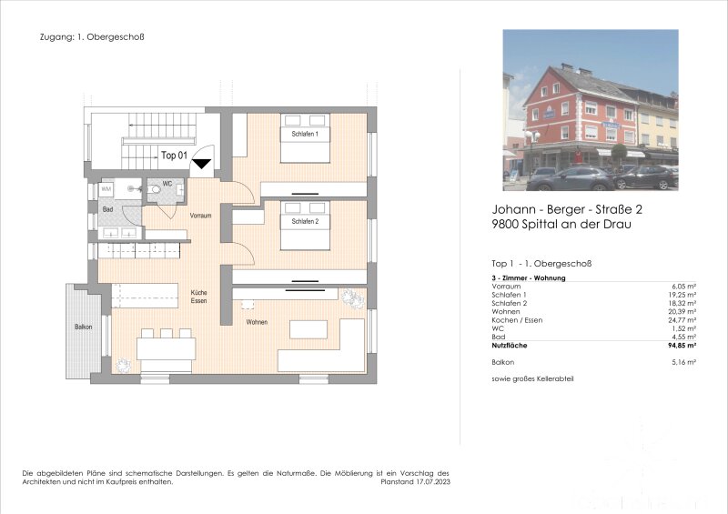 Beautiful 3-Room Apartment. Also suitable as an office. Rent in the heart of Spittal/Drau. Balcony.