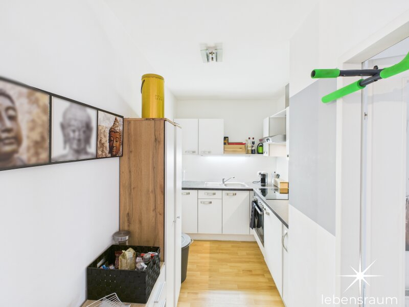The apartment also includes a carport parking space, making parking in Klagenfurt easier for you. The apartment’s amenities leave nothing to be desired: you can expect a modern fitted kitchen equipped with high-quality tiles, laminate, and parquet flooring. The bathroom with window and shower is the perfect place to start your day or to unwind at the end of it. The central heating provides cozy warmth and comfort during the cold months.