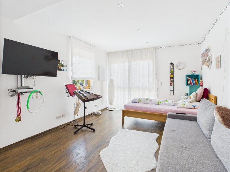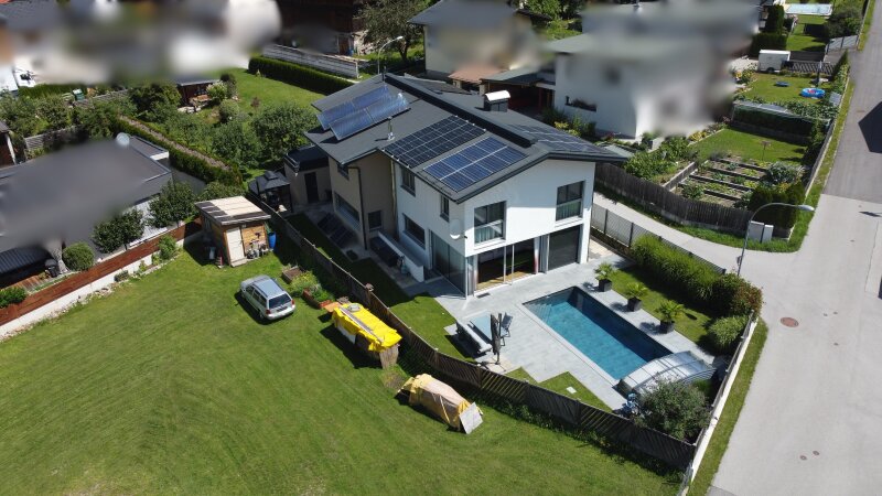 Thanks to the comprehensive energy renovation including modern air-source heat pump, photovoltaic, and solar thermal, the house boasts very low operating costs – a future-proof investment with high living comfort and low energy consumption.
