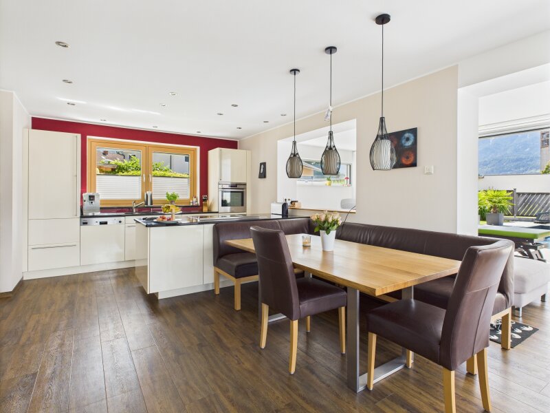 This spacious house near the sun city of Lienz combines high-quality living comfort with modern, sustainable technology. On approximately 220 m² of living space and a approx. 522 m² large plot, you will experience stylish living with plenty of space for family, guests, or potentially divisible into two separate living units (each approx. 110m²). The house is largely basement and thus offers additional storage space.