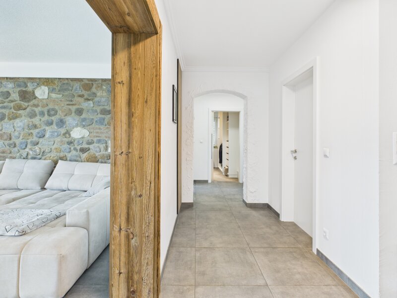 Die moderne Ausstattung des Wohnhauses mit Solarenergie und Zentralheizung erfüllt erhöhte Umweltstandards und sorgt für geringere Betriebskosten.