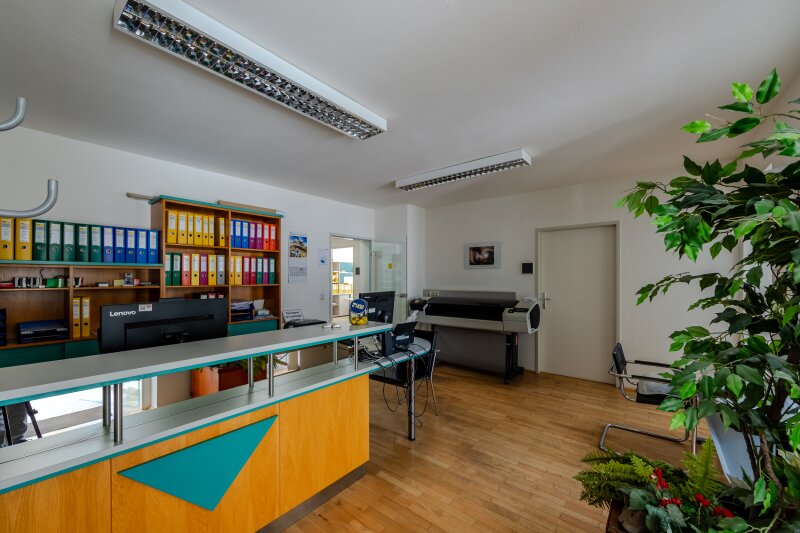 Großer Vorteil: Beide betrieblichen Geschosse sind auch separat anzumieten; also auch für zwei verschiedene Firmen.