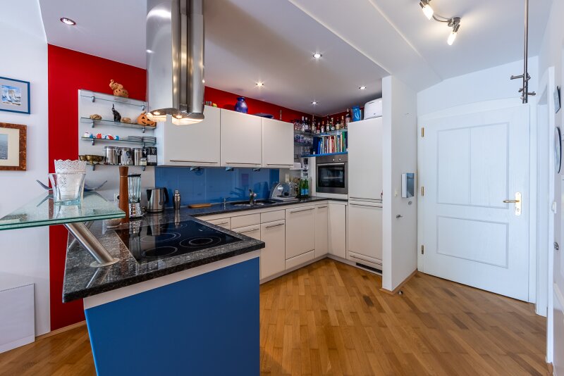 Auch die hochwertige Ausstattung der Wohnung lässt keine Wünsche offen. Die Böden sind mit Fliesen und speziellem Parkett verlegt, der für ein gemütliches Ambiente sorgt. Für wohlige Wärme sorgt die verbaute Fußbodenheizung. Eine moderne, offene Wohnküche ist bereits vorhanden, ermöglicht Ihnen ein komfortables Kochen und anschließendes Genießen. Der Personenaufzug bringt Sie bequem in die 2. Etage.