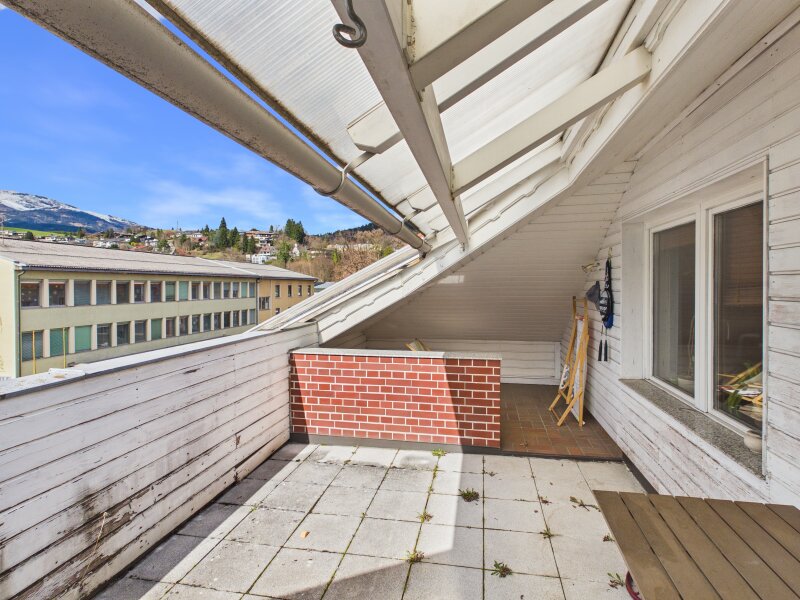 Besonders hervorzuheben ist die ca. 22,50 m² große Terrasse. Hier genießen Sie dank der West-Ausrichtung sonnige Nachmittage und entspannte Abende mit einem tollem Blick über die Dächer der Stadt bis hin zu den umliegenden Kärntner Bergen.